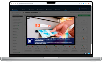 Você pode exibir notícias, campanhas internas, vídeos, imagens, dashboards de indicadores, feeds de redes sociais, previsão do tempo e templates exclusivos para diversos temas.