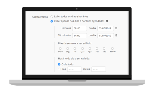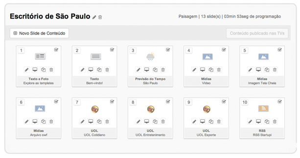 Controle a ordem de exibição dos slides, o tipo de conteúdo e segmente a exibição de acordo com sua estratégia de comunicação.