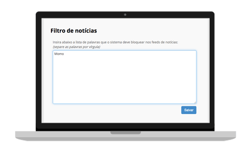 Como as notícias são publicadas diretamente por portais e outros feeds de conteúdo, é possível gerar uma lista de palavras negativas que caso sejam utilizadas, bloqueiam as notícias de aparecerem nas telas.