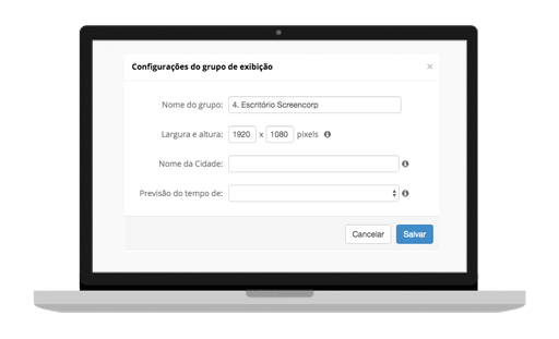 Defina a resolução das TVs (tamanho em pixels, vertical ou horizontal), cidade para previsão do tempo e possibilidade de gerar uma cópia.