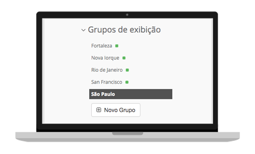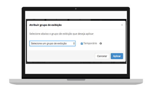 Com o grupo de exibição temporário você pode atribuir a mesma programação para todas as TVs ao mesmo tempo e depois retornar a programação anterior.