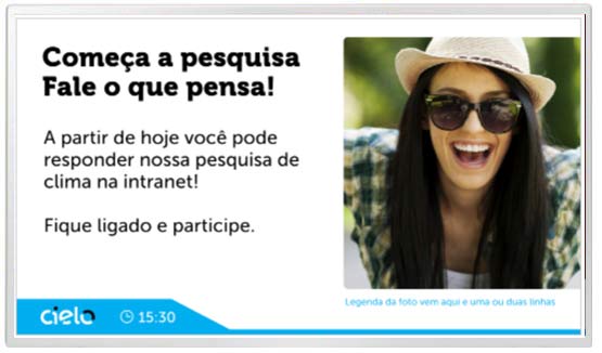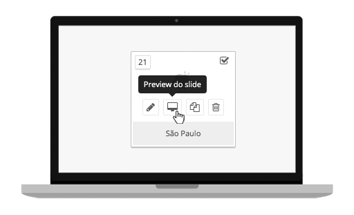Antes de distribuir o conteúdo para as TVs você pode clicar em preview para ter uma pré-visualização de como esse slide ficará nas TVs.